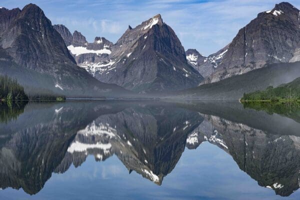 The astonishingly perfect reflection on Swiftcurrent Lake in the “Many Glacier” area of Glacier National Park.